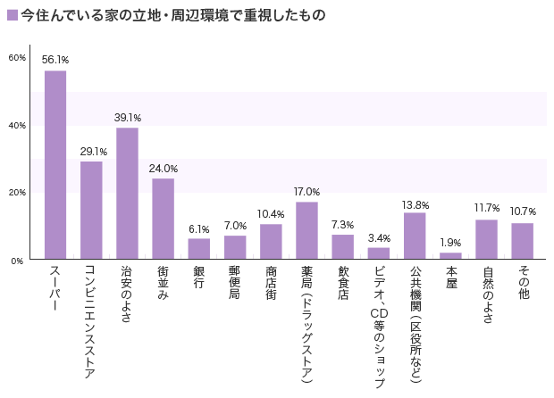 契約するときの決め手になったポイント1位は「バス・トイレ別」。二人暮らしになると、どちらかが入浴中に、もう一方がトイレを使いたい場合など、一人暮らし以上に不便が生じるため、こだわった人が多いようだ。また、シングルの調査と比べて数値が高めなのが「LDKの広さ」「各居室の広さ」。二人で快適に暮らすためには、部屋の広さも重要ポイントのようだ。