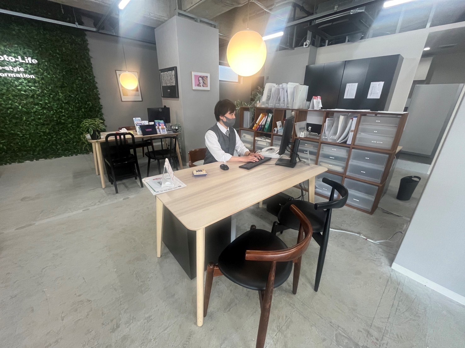 店内はおしゃれなカフェをイメージした北欧風ナチュラルデザイン。リラックスした空間でお部屋探しを進めていただけるよう心がけます。