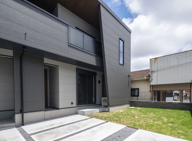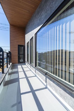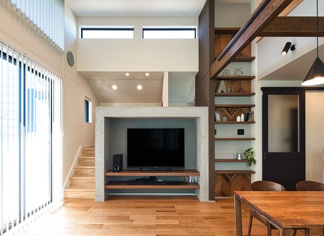 限られた敷地面積を有効活用するため、秋田建設工業が提案するのは廊下などの無駄なスペースを極力減らして、勾配天井を利用したロフトのある平屋。ロフトは収納スペースとしても趣味スペースとしても活用できるマルチな空間だ。また、勾配天井にすることで吹抜けのような開放的な空間を演出できる。中庭に面するように居室を配置したり、格子で目隠しをしたりと、プライバシー性にも配慮しているという。