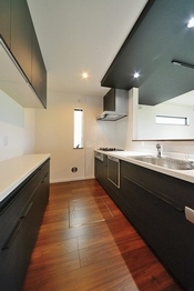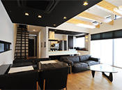 そのスタイリッシュな外観で建設中からご近所の注目の的だったというN邸。外観は黒のガルバリウムで、リビングも黒を基調にオシャレにまとめている。もちろん使い勝手も考慮しており、LD部分は平屋だが奥のキッチン部分が2階建てで、リビング階段で上階とつながるようになっていたりと工夫がこらされている。神奈川エリアに根ざした家づくりで着実にファンを増やしてきた同社。施主のこだわりをくんで、その想いを実現している。