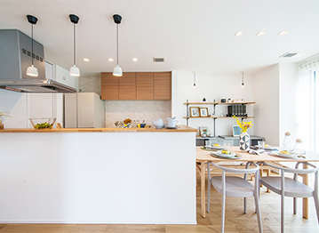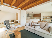 同社の建物は、家の構造材や耐久性や耐震性など、目に見えない部分の品質も追求することで、国が認めた「耐震等級3」という最高等級の安全性を確保。耐震性に加え、より大空間を希望する施主にはテクノストラクチャー工法を提案している。安全を確保しながら、スケルトンの階段や吹き抜けリビング、アイランドキッチンなど、伸びやかなデザインを取り入れることができる。