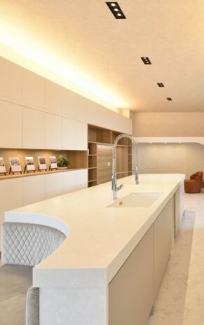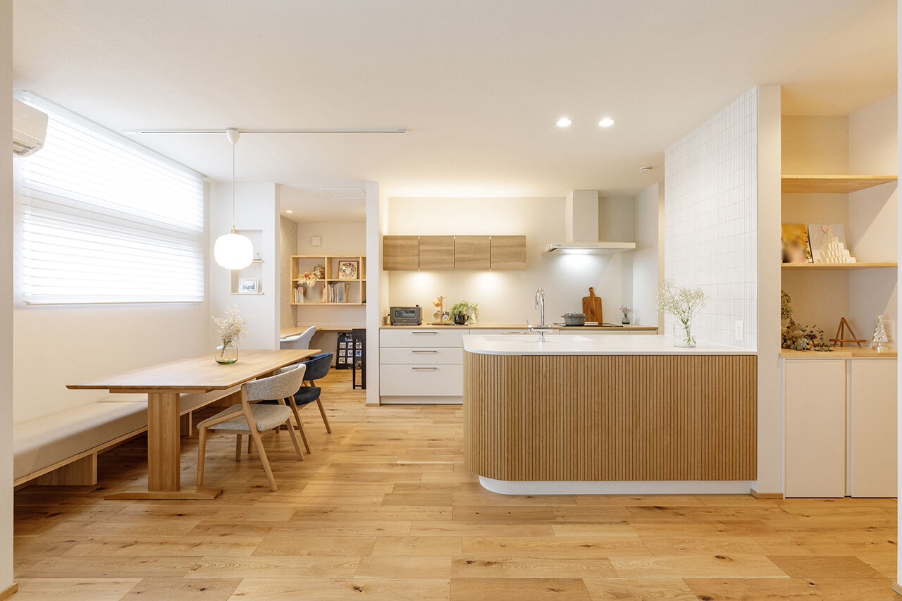 お茶の間、リビング、そしてLDKへ…、住まいのメインステージは移り変わってきた。その変化は、今も続いている。たとえば、子どもたちが宿題をキッチンでするように、暮らしはもう、キッチンを中心に回りはじめているのではないだろうか。この流れを敏感に感じていた「アルファホーム」。設立当初から『キッチンと暮らす。』をキャッチフレーズに、ユニークな住まいを提案し続けてきた。そして20年。現在、三河エリアでは、「キッチンにこだわるなら、まずはアルファホームへ相談」と、そのネームバリューは、地元にしっかりと根付いている。使い手の家族構成はもちろん、身長、ライフスタイルまでヒアリングした上で、ミリ単位で設計・施工されるオーダーキッチンの使い勝手とデザイン性の高さは、施主から施主へと、口コミによって伝えられている。同社が家づくりでもっとも大切にしているのが、顧客の満足度である。その実現には、それなりの時間をかけた仕事が必要となる。そこで同社は、年間施工棟数を20棟に限定した、丁寧な家づくりを行っている。あなたがもし、キッチンにこだわるのであれば、その1棟に加わってみてはいかがだろうか。