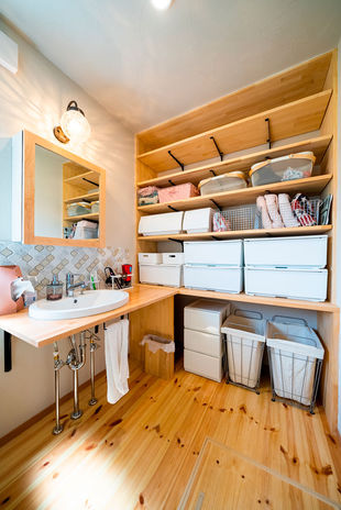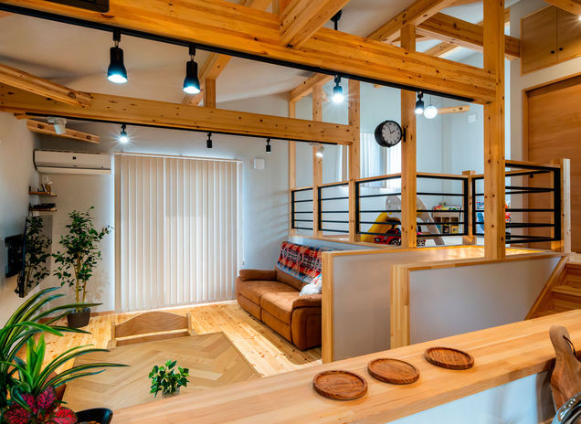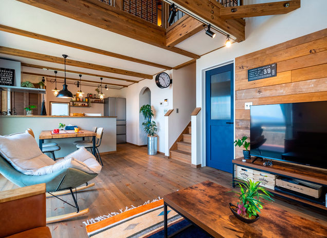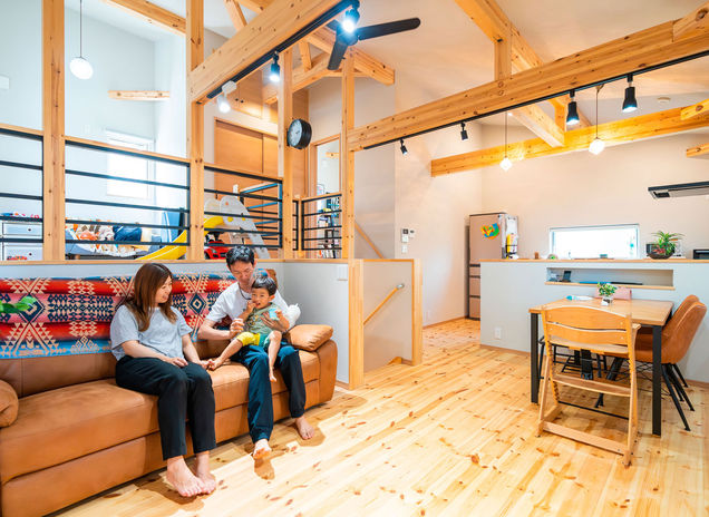 家はどこよりもホッとできる場所だから、自然素材ならではの温かみや風合いの変化を味わえる木の家にこだわりたい。そんな想いから、村越建設の手がける規格住宅「BinO」シリーズは無垢床を標準にし、梁や軒天で木の表情を楽しめるプランを多数用意している。さらに同社では、珪藻土壁や古材の壁といった住まい手のリクエストも高い施工力で実現。自然素材に包まれたオーナー宅も案内してくれるので、ぜひ肌で感じてみては。