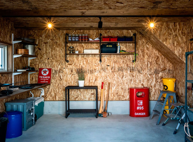 BinO東三河モデルハウスでは、スキップフロアの規格住宅「WAVE」36坪プランをチェックできる。0.5階と1階には寝室と洋室、水回りを集約。階段を上がると1.5階のLDKと2階のフリースペースが一体になった大空間が広がり、キッチンから家族の様子を見守れるのがうれしい。随所にある収納、アウトドア用品の収納やバイクガレージになるアウトドアストッカーも、モノが増えていく子育て世代に助かるはず。親子でワクワク見学しよう。