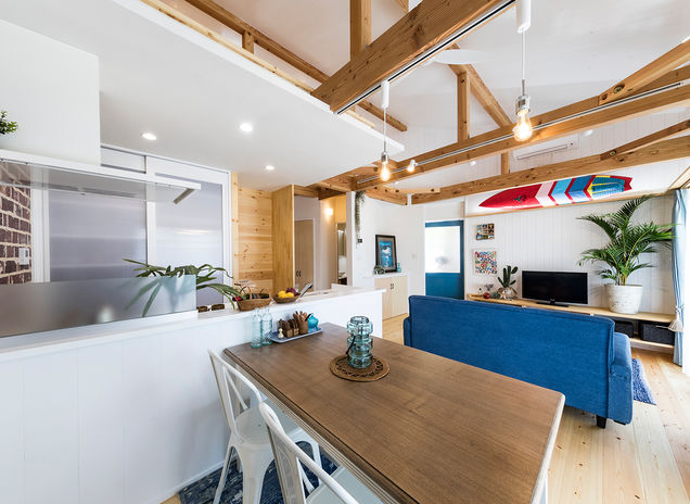 構造や耐震性、品質に妥協しない家づくりを心掛ける同社。「20年後も30年度も後悔させない家づくり」をモットーに、船岡社長が家具の造作やアイアンの製作に至るまで、お客様の要望に合わせて綿密な家づくりを進めていく。本格的な茶室入りの物件を手掛けた経験も。「お客様の予算に合わせた提案には自信がある」と頼もしい。(写真は3000万円台)
