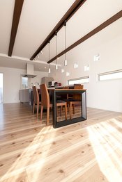 木材の種類、太さ、節のありなし、塗材…木は使い方次第でどんなイメージも作れる柔軟な素材だ。吉川住建の自社ブランド「ファイネスホーム」では自由自在に多彩なスタイルを提案してくれ、木の温もりあふれる空間コーディネートが可能。明るい色の木材で和の様式を取り入れたシンプルスタイル、また渋みのある落ち着いた色の木材でアジアンリゾート風に。ほかログハウス風なども叶う。豊田展示場で見学も可能。ぜひ一度相談を。