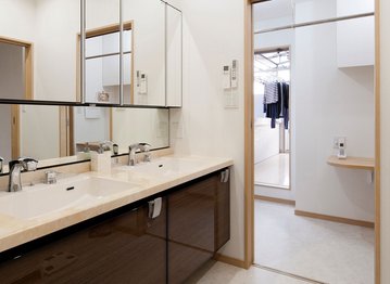 キッチンからの動線、洗濯脱衣室からの動線、家事の時短を考えるときに絶対に外せないポイントだ。吉川住建では専任の建築士とコーディネーターがゼロから家づくりをサポート。料理や食事、後片付けのしやすさ、洗濯物の洗う・干す・しまうの動線、そのほか各種設備の使いやすさなどを施主の生活スタイルに合わせてアドバイスしてくれる。毎日のことだから時短が大事!快適に暮らすための重要ポイントとして相談してほしい。