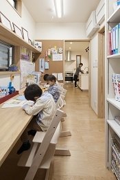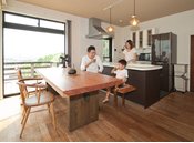 施主の満足と笑顔を大切に、住みよい家をつくってくれる吉川住建。見た目のデザインに加えて、安全性や耐久性、機能性も兼ね備えた住まいを提案している。中でも何かと忙しい働くママに嬉しいのが、キッチンに立ちながら家族と目線が合う暮らしの提案。キッチンのすぐそばに「ママのワーキングスペース」を設けて家事を効率化し、子どもの勉強を見たり、自分も仕事をしたり。自分の目の届く範囲に必要なものがある暮らしができる。