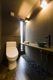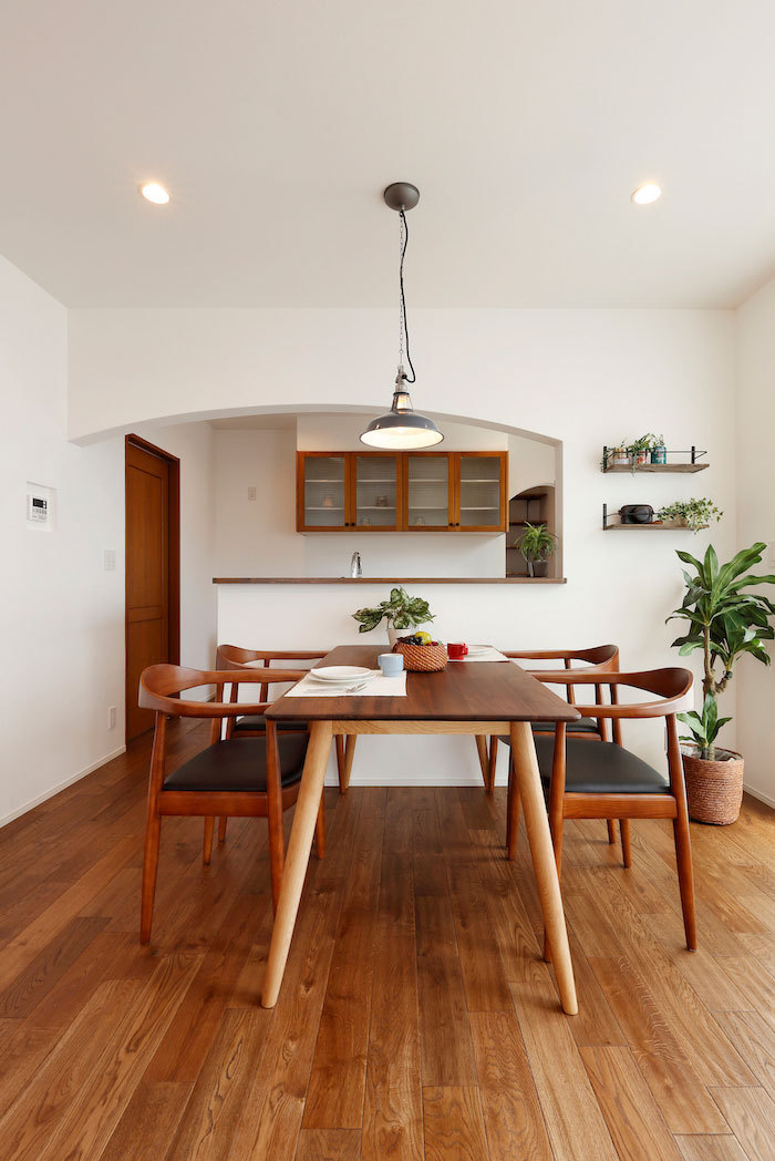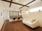 住宅会社の仕事は家のみを作れば終わりだろうか?家づくりを通して、どんなデザインがお好きなのか、どんな生活をしたいのか、たくさんお話してきたのだから、設計士が家は勿論家具まで提案してくれたらどうだろう。同社は、素材・デザイン・心地良さ・価格、すべてに自信が持てる家具を独自に開発、コーディネートのご提案もさせて頂く。写真のダイニングセット、キッチン、ソファ、洗面化粧台、床材などはすべて納得オリジナル