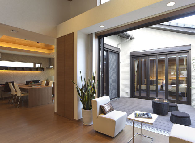 家づくりを通じて豊かな社会づくりに貢献し、次代を創造し続けたいと考える同社。竣工後に幼児や高齢者が安全に安心して過ごせるバリアフリープラン、さらに年齢を重ねて永い間、快適に住んでいただくためのユニバーサルデザインにも精通している。90年超という長い歴史を誇る同社は、二世帯住宅も数多く建築しており、スロープを設置したり、土間やウッドデッキを含む居住空間をフラットに設計することにも優れている。