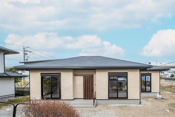 平屋をご検討されている皆様へ。平屋ならではのワンフロア設計は、家事動線をスムーズにし、段差を減らしたバリアフリーで安心感を確保。大開口窓や天窓で光あふれる室内が庭との一体感を生み、外壁は耐久性に優れた素材でメンテナンスも簡単。毎日の何気ない時間が、ゆとりと快適さに包まれた特別なひとときに変わります。