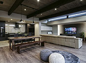 「車が2台入る、重厚感のあるガレージハウス」「高級感と同時に開放感あふれるリビング」「都市の中で外部の視線を気にすることなく自然を感じながら暮らす工夫」「スタイリッシュなデザインや素材に包まれた空間の心地よさ」など、多くの要望があったHさん。しかし、それらを実現するには難題が待ち構えていた。敷地が高低差のある変形地だったこと。「ビー・エル・ビルドさんは、デザイン力と技術力、そして家づくりへの情熱がある住宅会社でした。難しい敷地でも、どんどんいろいろな提案をしてくれましたね。地域密着体制で長年実績を重ねてきた点にも信頼が置けましたね」。特にHさんか喜んだのはLDKやビルトインガレージの重厚感・高級感のある佇まい。理想の住まいに大満足のご様子のHさんだった。