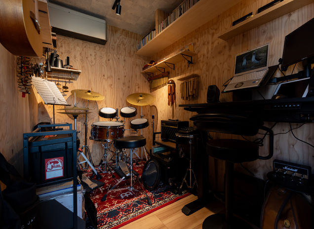 同社では、施主が理想とする趣味の空間や予算に応じて、防音・遮音性を高めたプランを提案する。例えば本格的な音楽室の場合は、防音仕様の建具や建材、吸音材などを使用し、外部の音が干渉しない空間を創り出す。「静かで落ち着いた書斎が欲しい」という場合は、間取りの工夫や断熱材の厚みなどを調整することで遮音性を向上させる。写真は本格的なドラム室とゲーミングルームの事例。憧れの空間を相談してみてほしい。