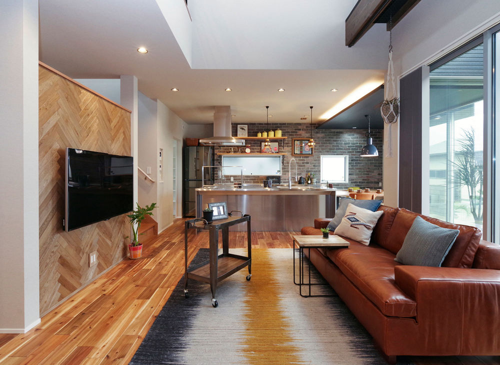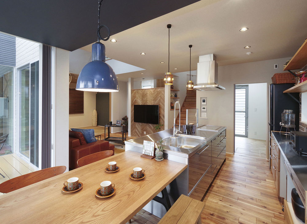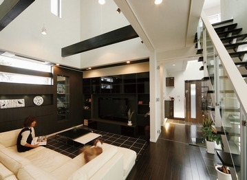 「週末には必ずどこかに出かけていたが、この家を建ててからは室内でのんびりと過ごす時間が多くなった」。同社で家を建てた方が異口同音に言う感想である。特徴的なのは暮らしを楽しむ内観デザインとなっていること。愛車を眺めるリビングや趣味を楽しむ空間、中庭とのつながりなど、室内空間は住む人のこだわりを表現する場そのもの。無垢材を用いたり、デザインに凝ったりと、思いっきり自由に個性を発揮していただきたい。