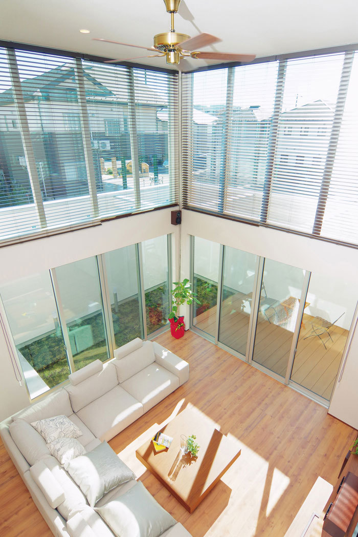 ビー・エル・ビルドが重要な設計テーマとして掲げているのが、「光と風」を取り入れた住まいである。その土地ごとに風の向きがあり、季節ごとに太陽の入射角度も違ってくる。社内建築家が現地に立って立地環境を把握し、窓の位置や大きさなどを設計図に落とし込んでいく。周囲に建物が建て込んでいる立地でも、外に閉じ、内に開く設計で光と風を取り入れる工夫を絶やさない。それが永く快適に過ごす家を可能にしている。