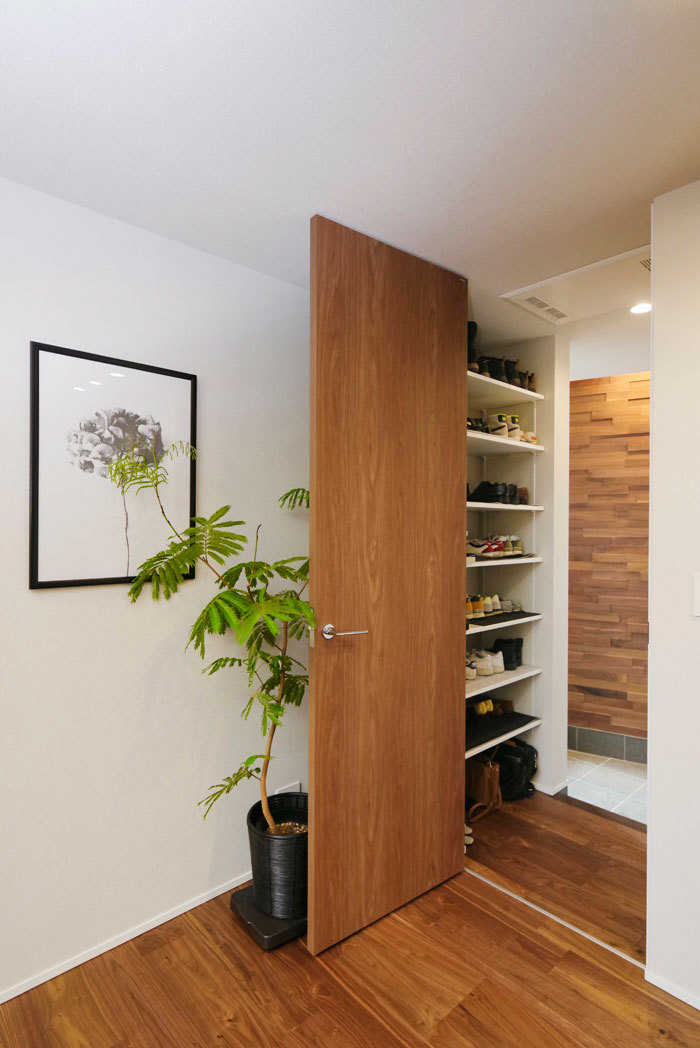 収納をタイプ別にみると分散収納と集中収納がある。分散収納は適量適所を重視した収納の考え方で、エントランスやLDK、洗面室、書斎、寝室、階段下など「ここに収納があったら」と思う場所に計画的に配置する。集中収納はロフトや蔵収納などの大きなスペースに季節の道具などをまとめて収納するもの。これらをバランスよく配置することでリビングにはモノが散らからず、美しい暮らしをいつまでも楽しむことができる。