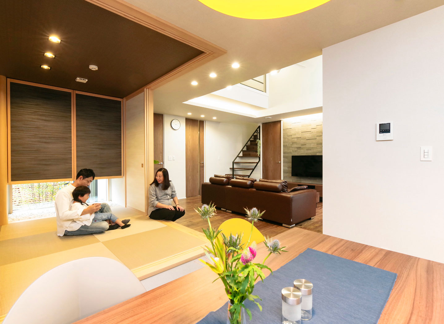モダンなデザイン住宅で知られるビー・エル・ビルドだが、同社が和空間を手がけるとどうなるか興味あるところだ。施工事例を見るとその出来映えの鮮やかさにため息がもれる。独立した和室にアクセントウォールを配したり、リビングに続く畳コーナーの造作にこだわったりと、和モダンの美しさと楽しさがあふれている。平屋造りなども得意とする同社ならではのセンスの良さが存分に発揮されている。