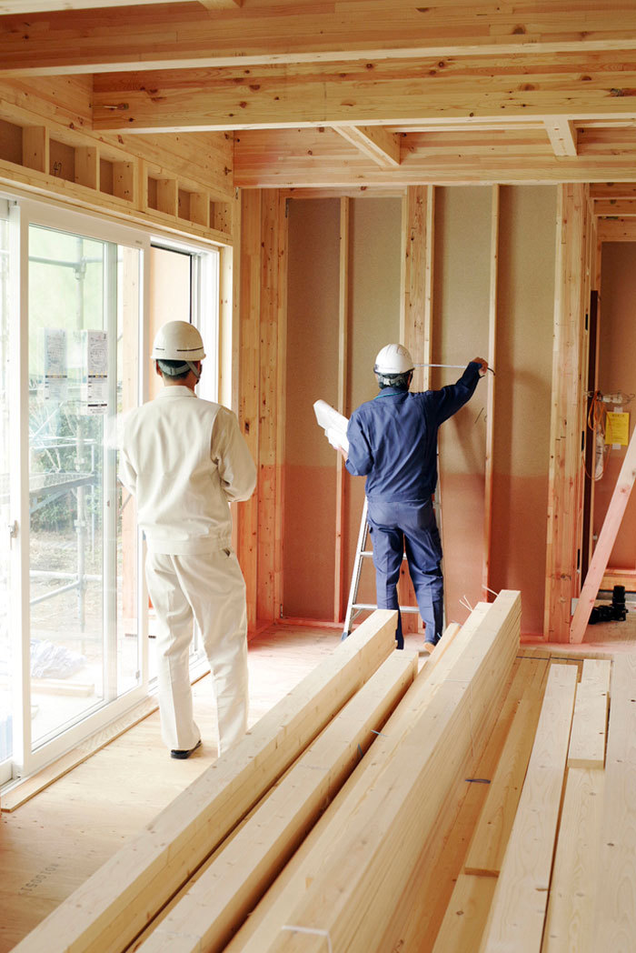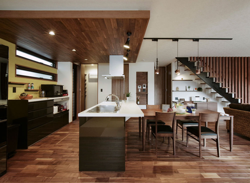 伝統の木造軸組工法(在来工法)による家づくりを行う同社の住まいは、「木の家」にこだわりたい人に最適である。標準仕様の構造材は厚み2cm前後の板状の木材を積層した頑強なエンジニアリングウッドを使用。土台には耐水性の高いヒバを使うなど、適材適所で素材を厳選。床はウォールナットやオークなど希望の素材に対応するほか、天井や外装(外壁・軒天)にも、好みの木をデザインとして施すことができる。