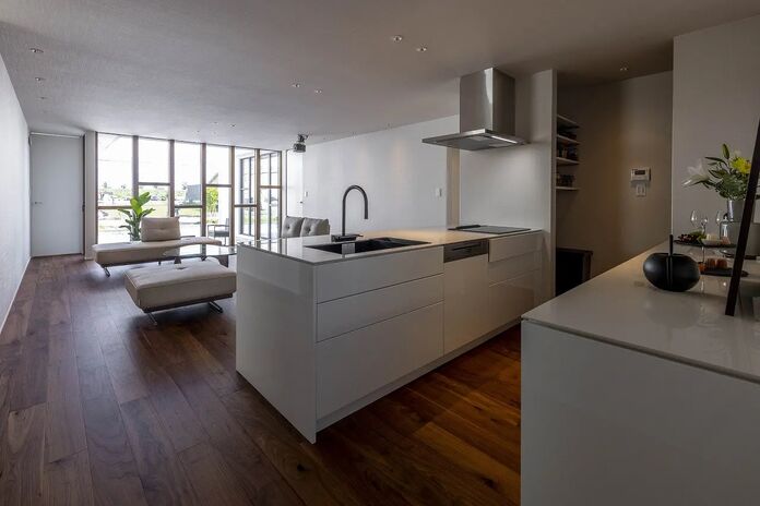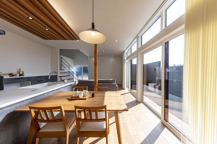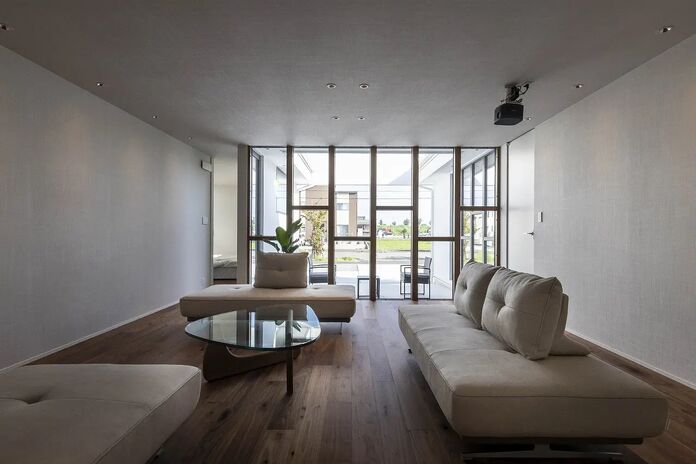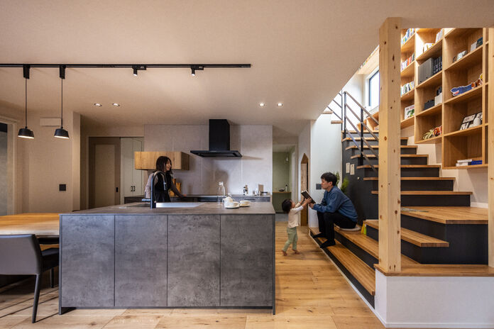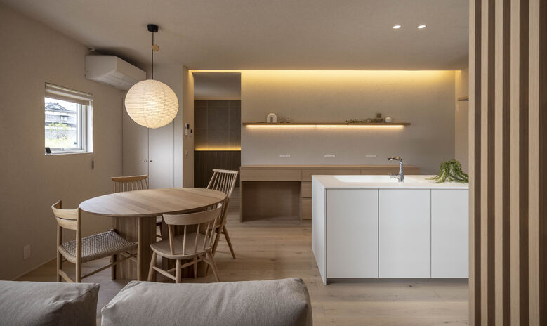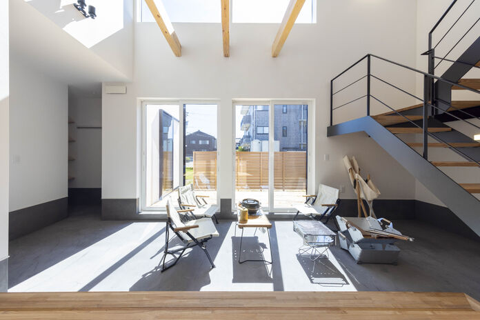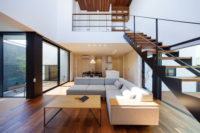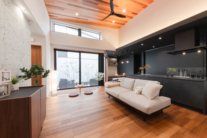 1階に主寝室を配置することでワンフロアで生活動線が完結する平屋+αの住まい。幅広い年齢層から支持のある平屋は、住宅の中で最も贅沢な住まいと言えるかもしれない。高天井でもオリジナル換気システムにより家全体の空気循環をコントロール。家中温度・湿度一定を保ちヒートショックの起こりにくい住環境を提供。見た目の美しさはもちろん、住む環境まで選ぶことが出来るのが現代の住宅だ。