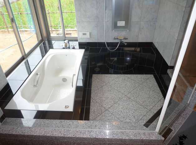 木材や越前和紙、大理石、ガラス、瓦、珪藻土などの素材を仕入れ、自社で加工するタガハウス。長い年月をかけて乾燥させた木材でつくる一枚板のキッチン台、御影石やタイル・モルタルを自由に組み合わせたホテルライクなバスルームなど、こだわりの素材でハイグレードな住まいを実現する。また、標準装備の温水床暖房は、浴室では床・壁・天井にまで施され、自然素材のぬくもりを体中で感じることができる。(写真は4000万円~)