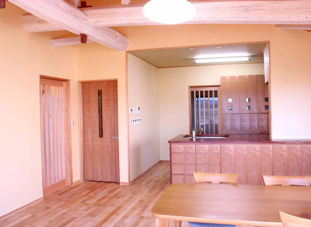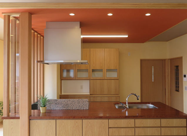 タガハウスのこだわりのひとつが、その家族だけのオリジナルデザイン。キッチンや家具、ドアやふすままで造作し、ずっと長く大事にしたくなる住まいを提案している。施主の好きなモチーフを施したり、ドア1枚から意味を持たせりと、デザインにとことんこだわることができるのは同社ならでは。床や壁に異なる種類の木材を、天井に和紙クロスを、扉にアートグラスをなど、心がこもった美しい家になる。