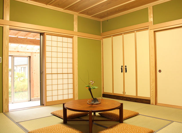 文化財の補修にも携わる職人による、伝統的な木造軸組工法の住まいづくりを行うタガハウス。和の趣ある家は、同社の得意分野のひとつ。日本古来の風情が感じられ心安らぐ空間は、選び抜かれた木材や越前和紙クロス、原料から仕入れた珪藻土など、こだわりの自然素材でつくられる。また、装いは昔の良さを受け継ぎながらも、温水床暖房などの高性能な設備を備え1年を通して快適に過ごせる。自然素材が醸し出す経年美も魅力的だ。