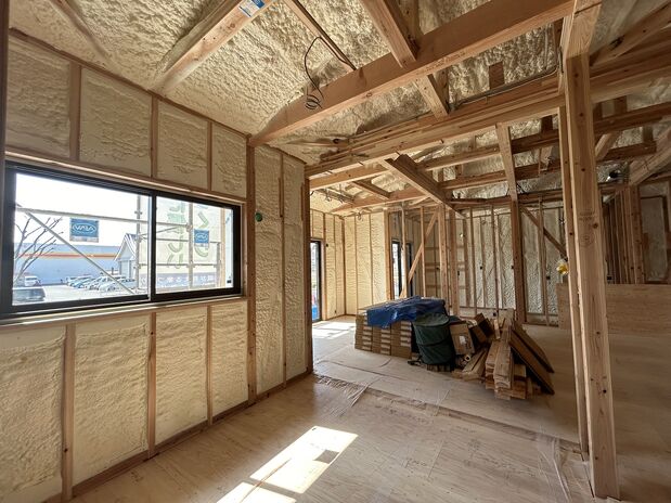 予算に応じてカスタムできるメイクハウスは、断熱材に現場発泡ウレタン「ダルトフォーム」を標準採用。隙間なく断熱材を充填し、家全体をカバーする事で、心地よい室温を保ち、冷暖房費用を大幅に抑える事が可能。気密性にも優れている為、外部の騒音もシャットアウトし、静かで快適な空間が広がります
