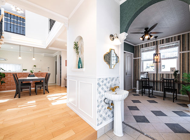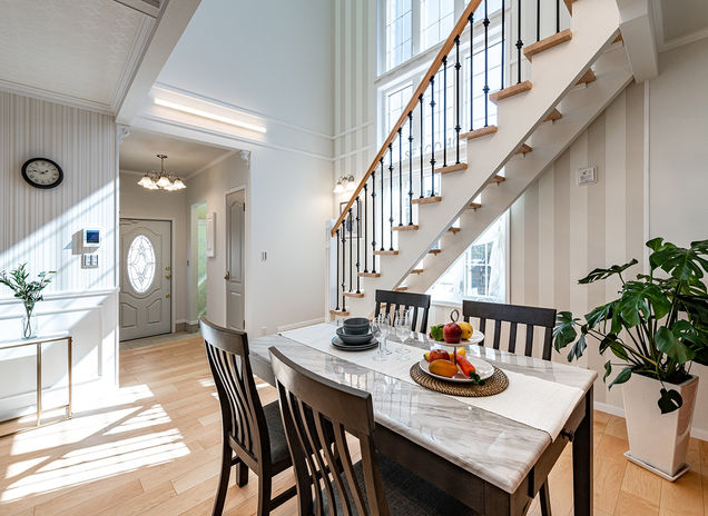 柔軟な設計力と提案力の高さで、施主の感性や価値観を表現するハイグレードな住まいを提供。断熱・気密性、耐震・耐久性に優れたカナディアンツーバイ工法が標準で、仕切りのない大空間や開放的な吹抜けを実現可能。カナディアンの住まいに精通するスタッフが、海外の住まいを再現する本格的な輸入住宅を日本の住宅条件と照らし合わせながら提案するので、完成した住まいへの施主の満足度が高い。(写真の建物価格4000万円以上)