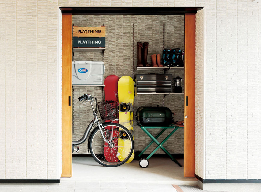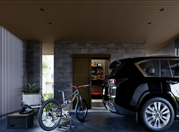 趣味のアウトドア用品や自転車、ゴルフバッグなど、室内におさまりきらないアイテムはどこの家庭にもあるもの。トヨタホームではガレージ内に収納スペースを設けることを提案。出かける際にクルマへの出し入れもスピーディで、見た目も美しく、防犯面でも安心。広々としたガレージはアウトドア用品などのメンテナンス空間としても活用でき、もっと気軽に家族で趣味を楽しめるようになるはずだ。