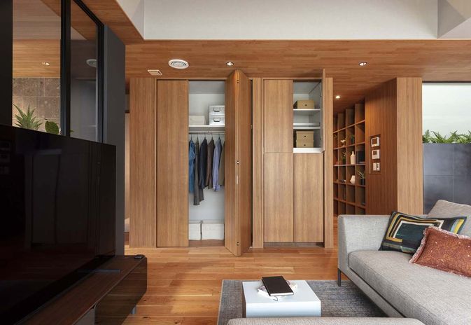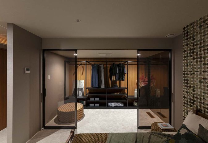 日々使うモノは使う場所の近くに収納を設けると片付けがしやすくなり、こまめに整理する癖が自然と身につく。洋服や靴の収納なども適切な場所に大きく広く空間を取ることで、身支度や片付けの時間をコンパクトに。こうした工夫をほどこし、自分の好きなこと、やりたいことに今まで以上に時間をかけられる住まいづくりを実現している。