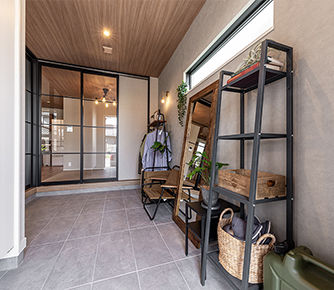 結婚する前からふたりで住宅展示場に遊びに行くほど、マイホームへの情熱を持っていたOさん夫妻。住宅展示場を初めて訪れたときに、外観を見て「この家、かっこいい!」と中に入ったのがトヨタホームだった。室内のデザインも気に入り、「60年保証というのがすごい」と性能の高さにも驚かされたのだとか。その後も、数多くのモデルハウスやショールームを見学して回るうちに、住みたい家のイメージがどんどん明確に。そして最終的に選んだのが、最初に一目ぼれしたトヨタホームだった。「デザインの良さだけでなく、地震への強さや長期保証など、住宅としての信頼性の高さにも魅力を感じました。トヨタの車は世界的なので安心なのかな、という気持ちもありました」とのこと。営業担当者はもちろん、設計担当者への信頼が高く、ほぼ黒で決めていた外観も「設計担当者がそこまで言うなら」と、白黒に変えたこともあったそう。「こちらの要望はしっかり反映してもらいました。いろいろ時間をかけてつくってくれた間取りを一からやり直してもらったこともありました。そこで変えることができたから、今満足できていると思います」と仰られている。