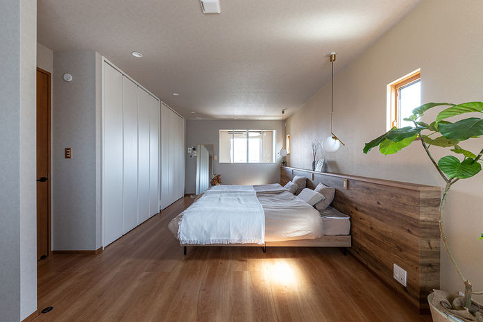 2人ともクルマが好きで、家を建てるなら「インナーガレージをつくること」、さらに「2台並列に置けて、1枚シャッターにすること」を最優先課題にしたKさん夫妻。住宅展示場を3カ所ほど回った際にも、理想のインナーガレージがつくれるかどうかが判断基準になった。1枚シャッターで2台並列のインナーガレージにするには、柱のない大空間をつくる必要があり、それが可能だったのがトヨタホームと他の2社。そこから、価格面や全館空調などの性能面で比べていき、最終的に選んだのがトヨタホームだった。営業担当の対応が早く、提案力が高くて選択肢が増えたことも大きな決め手になったそう。また、「一戸建ては建てた後のメンテナンスが大変」と心配していたが、工場見学に行き構造の強さが確認できたこと、60年長期保証で安心が得られたこと、メンテナンスフリーの外壁材を紹介されたことなども好印象に。完成した家は、「全館空調『スマート・エアーズ』のおかげでとても快適。友人からも『モデルルームみたい』『トイレも寒くない!』と驚かれます。図面やCGを見て想像していたよりもすごくいい家ができて、自分の家だという実感が湧かないくらい。先々のメンテナンスの負担が少なく、長く安心して暮らせる家になりました」と、満足されている