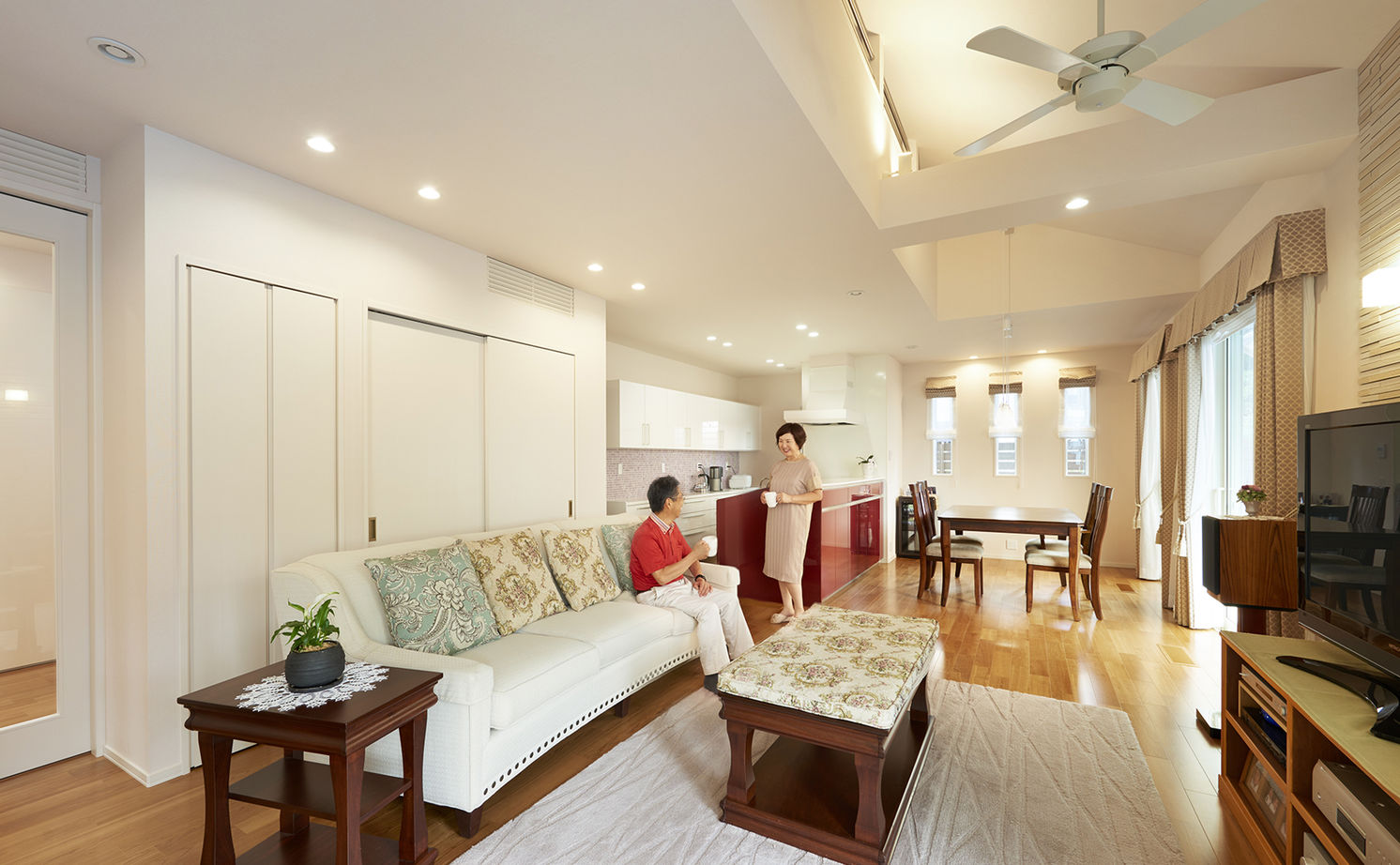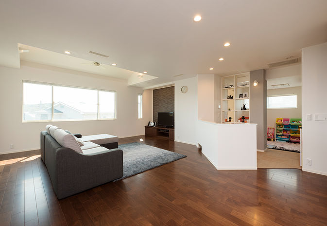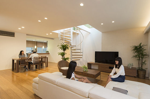 広々とした空間で、ゆとりの時間をすごしたい。最大35畳の大空間を実現できるトヨタホームなら、ゆったりとしたヨコへの広がりを楽しめる。さらに、上下の空間を連結させれば、開放的なタテへの広がりも実感できる。ゆったり広々としたリビングや家族がつながるLDK、上下階をつなぐ開放的な吹き抜けなど、思い描いた通りの空間づくりを楽しめる。
