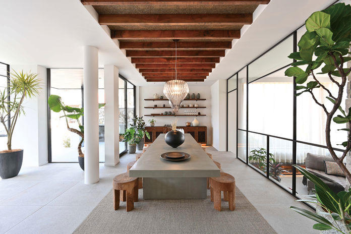 強い鉄骨の構造が、大開口も吹抜けの広々大空間も実現