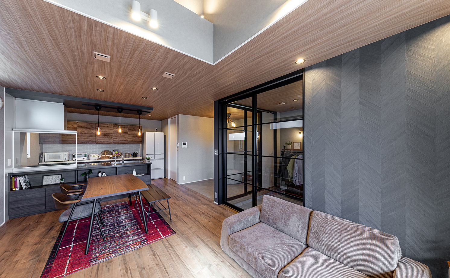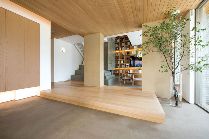 [夫30歳+妻] 結婚後間もない二人が家づくりを始めたきっかけは、姉が子ども連れで家づくりをする様子を見て大変そうに思えたから。「子どもが生まれてから家づくりを始めるより、夫婦二人きりの方がはかどるはず。子育ての期間もせいぜい20年。二人の生活を軸に考えた家づくりをしたかった」と奥さま。また在宅勤務が増えたご主人が、テレワーク中に生活音を気にして過ごす奥さまを思いやる気持ちも後押しした。