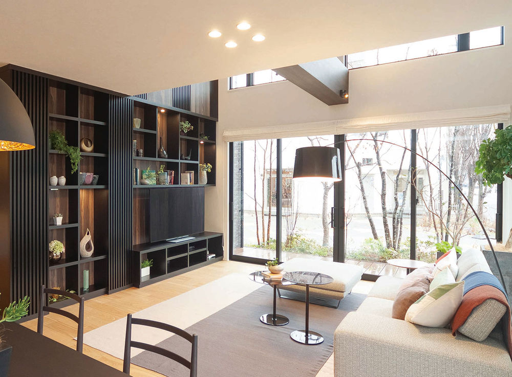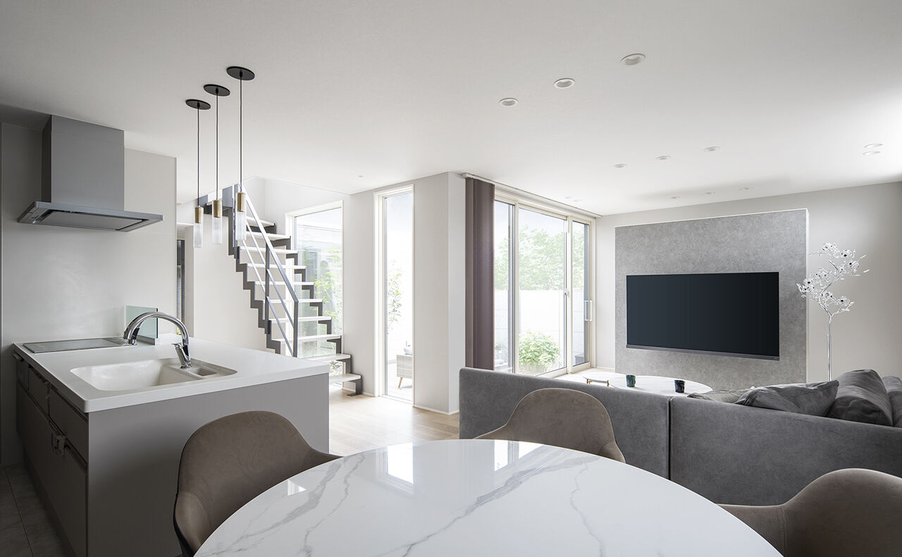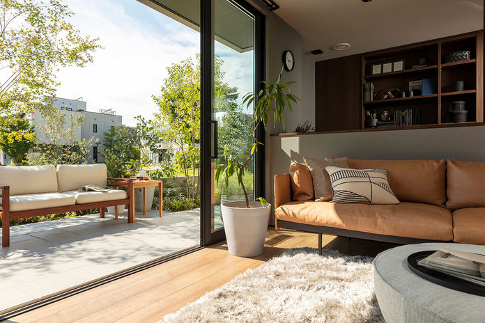 暑い夏を涼しく過ごすためには、空気環境を心地よい状態に保つ工夫が必要。同社では、吹き抜けやトップライトを活用した通風効率のよい設計を叶えるとともに、防犯性を保ったまま日差しを遮り、風を取り込む「日射制御エアリーガード」を採用。外出時や寝苦しい真夏の就寝時も「防犯+通風モード」で風を通すから室内温度は快適。エアコンの使用頻度も少なくなり、省エネルギーへの貢献にもなる。※地域によって設定不可の場合あり