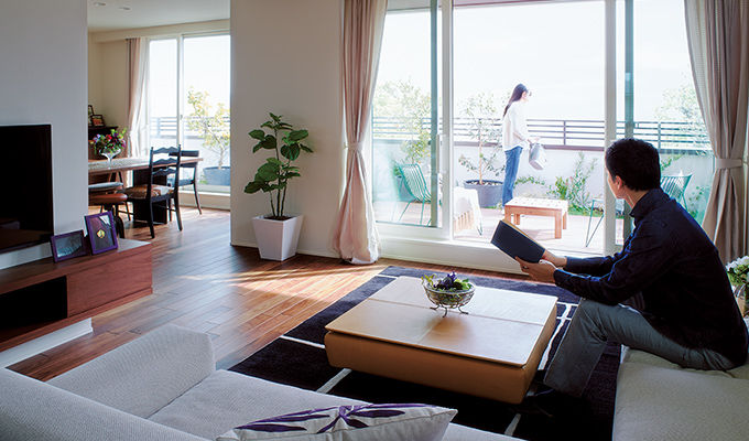 心地よい光と風は、暮らしを豊かに彩る存在だ。トヨタホームの住まいなら、窓の大きさを制限する筋交いや耐力壁が必要ないため、広々とした大開口が思いのまま。大きな窓からやわらかな光と爽やかな風を室内に取り込めば、家の中にいても四季の変化が感じられる、気持ちの良い暮らしを楽しめる。