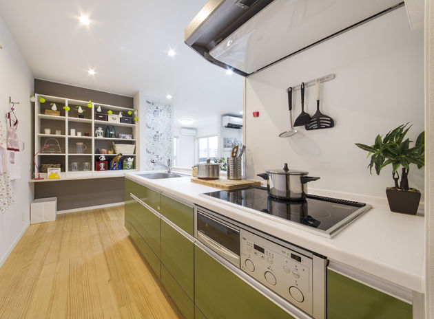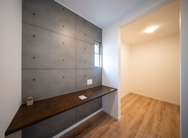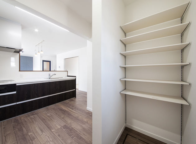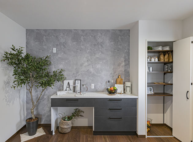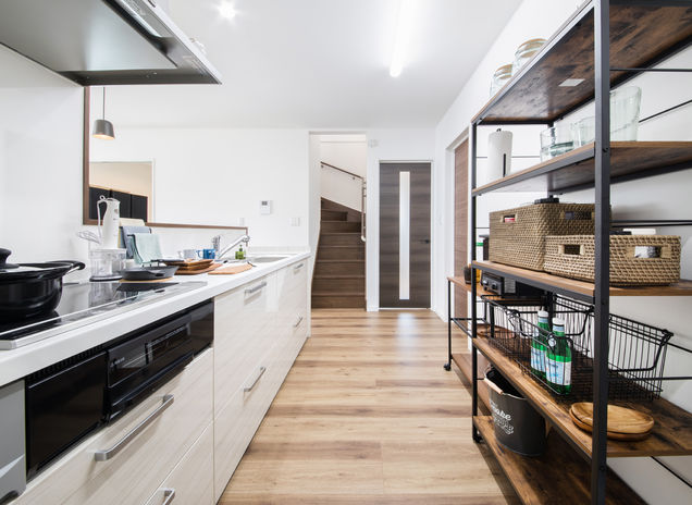 収納の充実は、暮らしやすさの重要ポイント。特に子育て世代はモノがあふれがち。そんな悩みに応えるのが同社の、子とはぐくむ家「コトハグ」。子ども部屋や居室は全室にクローゼット、主寝室には大きなウォークインと、収納スペースたっぷり。特に乱雑になりがちなキッチンまわりはワークスペースやパントリーでかさばる物もすっきり!玄関には濡れたものもOKな土間収納も。いつもすっきりな家は、子どものお片づけの習慣も育む。