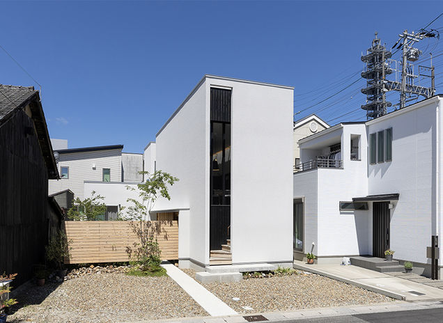 家づくりはゴールではなく人生の通過点。ムリせず、背伸びせず、将来まで見据えて住まい手それぞれの「ベストなカタチ」を一緒に考え、予算や土地の制約も個性に変えてくれるマテリアル・パレットの家づくり。狭小地・変形地のコンパクトな家でも、耐震等級3の耐震性やハイグレードな自社基準をクリアした気密性・断熱性がベースであることに変わりはなく、快適な住み心地にもきっと満足できるはず(写真の建物は1000万円台)。