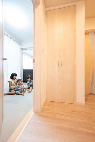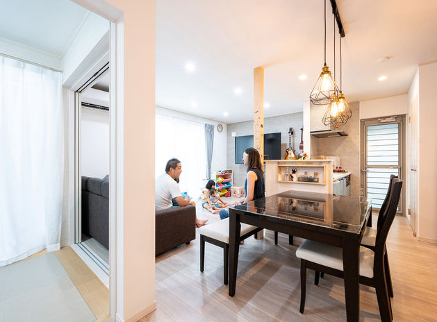 生き方を振り返り、これからの家族のストーリーを描く家づくり。子ども部屋のクロスを子ども自身に選ばせて家族みんなで家づくりを楽しめば、より愛着の湧く家に。眠った子どもを抱えて帰宅した際に肘でドアを開けられる玄関横の和室スペースなど、家族の暮らし方に合わせた動線や、間取りの工夫も。健康に配慮した化石サンゴの塗り壁材を採用し、空気環境にこだわるなど、子どもがすくすく育つ家づくりはおまかせを。