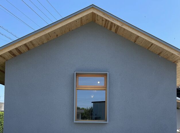 大開口のある平屋ならではの開放感を最大限に活かせるよう、マテリアル・パレットがプランニングで重視しているのが「軒の深さ」。たとえば雨の日。窓の外を眺めた時、軒が短ければ窓のすぐそばで雨がしたたり落ちるが、軒が深ければ窓からの距離が離れ、軒の深さの分だけ室内空間が水平方向に拡張したような感覚に。深い軒が直射日光を程よく遮ってくれるため、カーテンを開け放ってのオープンな暮らしも実現できる。