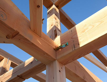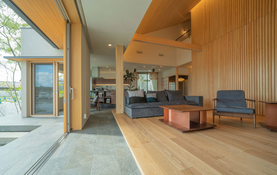 地元で育てる東濃檜だけでなく、全国の市場から直接仕入れる銘木も自社工場で製材することで、木が持つ力を最大限に引き出します。家の骨格ともいえる柱と土台には、国産の檜材を使用。強度はもちろん耐久性にも優れた檜材は、家族を守る家づくりに最適な木材です。さらに通し柱は4〜8寸という骨太の柱を基本にするなど、セオリー以上といえる強度を当たり前に。制震装置「ミライエ」を基本仕様にし、高水準のコンクリート強度を持つ鉄筋コンクリートベタ基礎を採用するといった地震対策も行い、圧倒的な安心感で家を支えます。