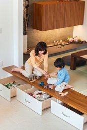 新築時はどの家もスッキリと整頓されて、美しいリビングやキッチンを形成している。しかし、年月を重ねるにつれ、床にモノが置かれたり、乱雑な室内になるケースが多い。その原因は収納計画が十二分に行われていなかったことが大半だ。上手な収納計画のポイントは、集中収納+分散収納、適量適所にある。あらかじめ将来の収納量を予測して造り付けの収納を適正に配しておくことで、いつまでもスッキリとした居住空間を実現できる。
