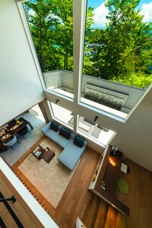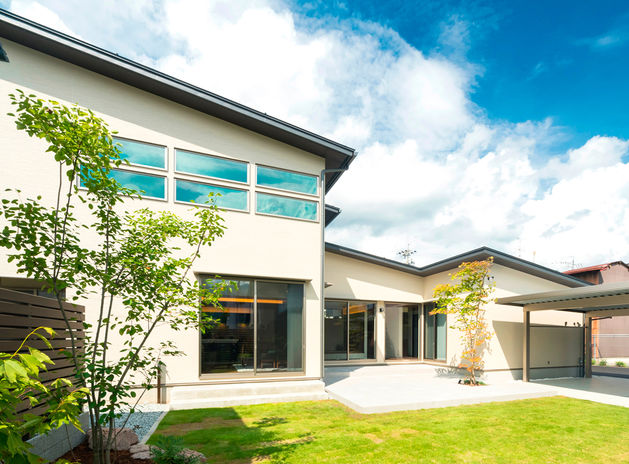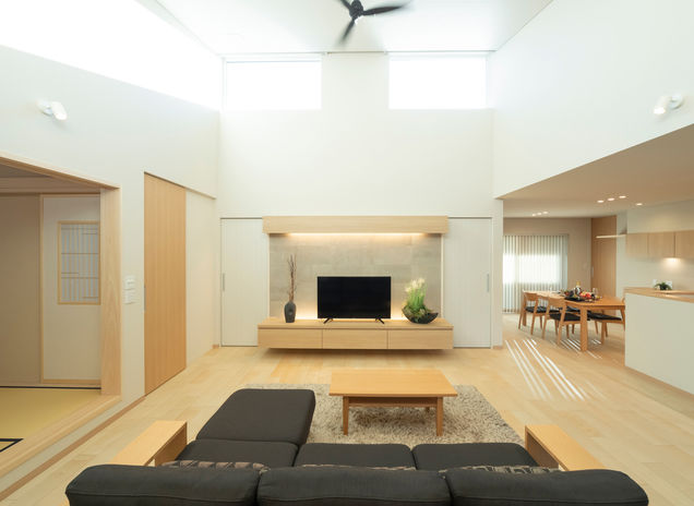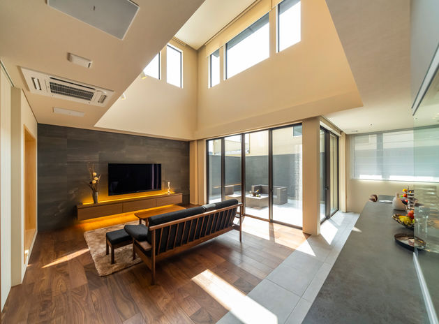自然の力を最大限に活用するパッシブデザインを軸に、洗練された住まいを作り上げているNOZOMI HOME。同社では建築予定地を設計士が事前に調査し、全棟で日照シミュレーションを実施。効率的に光と風が取り込めるよう窓の配置などを設計している。夏の強い日差しは遮熱性能の高いカーテンや庇などでコントロール。窓の外に広がる景色も計算されている。