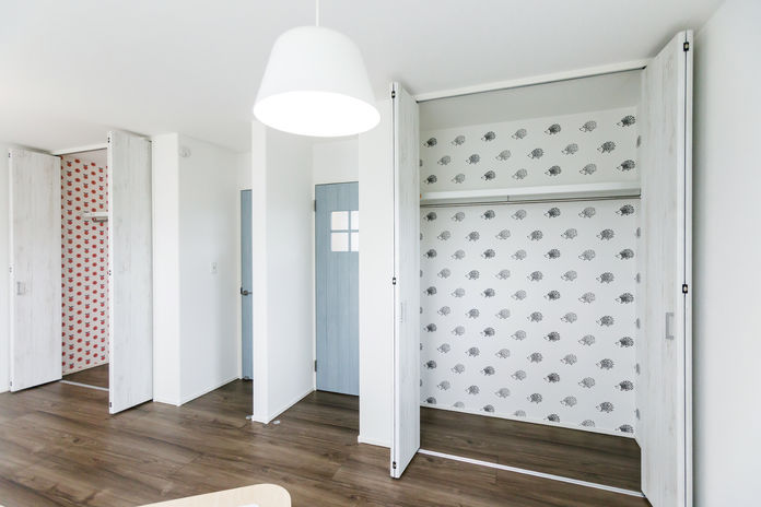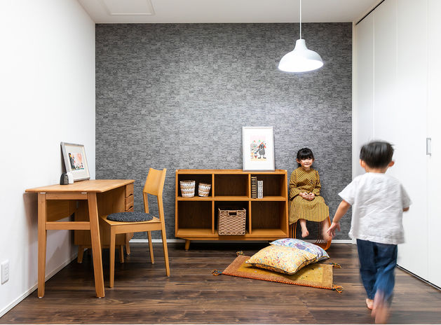 子育て世代のお客様が多いからこその、ご提案や性能も充実。柱の角が丸くお子様が体をぶつけても安心です。また、初めは子供部屋は一部屋で、大きくなった時に壁を作り2部屋に出来るプランもあります。