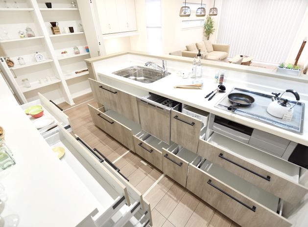 大切なのは収納の広さだけではない。住む方のライフスタイルにあわせ使いやすく、機能的な収納を提案。子育て中の方には、帰宅後玄関にベビーカーをそのまま収納できる玄関クロークを。毎日忙しい共働きのご家族には、買い置きができる食品庫など。住む方それぞれのライフスタイルに合わせたプランづくりをサポート。