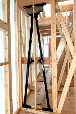 住宅全体の重量を支える基礎には鉄筋コンクリート造のベタ基礎を採用し、強度と防湿の両面から日本の四季を考慮した造りとなっている。さらに軸組の各接合部には引き抜き防止補強のためホールダウン金物等を使用し、より強固な構造を実現。また床組には剛床工法を採用し、建物の剛性をアップさせている。