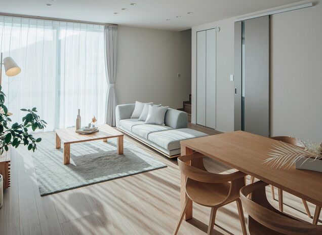広々と開放的な空間で心穏やかに過ごす暮らし。ワイドリビングと統一感のあるデザインが、視覚的な広がりと心の落ち着きをもたらします。構造が生む、揺るぎない安心と豊かさ、本当に価値あるものだけを選び取る、シンプルで上質な暮らしを叶えます。