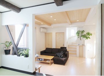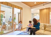 桧家住宅の全館空調「Z空調」は、住まう人に快適な温度・湿度環境を提供する。外気温の影響を受けにくい高気密・高断熱な住宅性能に加え、24時間給排気を機械動力で行う「第1種換気」と、熱交換ユニットを利用した「全熱交換式」を採用し、建物内全体に快適な温度・湿度に調整された空気を供給。温度のバリアフリーはもちろん、24時間いつでもきれいな空気が循環する中で、快適な暮らしを楽しむことができる。