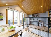大切なペットと快適に暮らせる住まいを提案する桧家住宅。家中が一年中心地よい「Z空調」でペットがどこでも居眠りしている…というオーナーの声も。自由に動き回れるキャットウォークを設置するなど多彩な実績もあり、階段下の空間を有効活用した「わんにゃんルーム」は、オリジナルのペットゲートを設ければちょっとした外出も安心。ペットと人が共に心地よい暮らしを叶える家づくりに力を入れている。